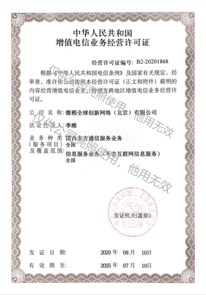 《增值电信业务经营许可证》证书编号:B2-20201868